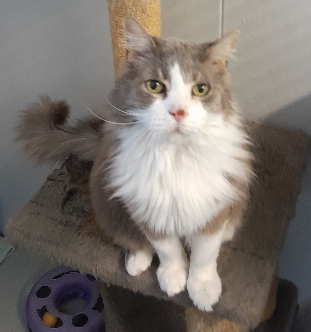 Cuddles along with his best friend Midnight are 2 beautiful natured older cats looking for a lovely quiet home to enjoy the remainder of their senior years, both have very similar personalities relaxed, social, and inquisitive. They are indoor only cats, who love sunbaking in a nice warm spot on a windowsill, Cuddles has a slightly longer coat than Midnight however they will need a new owner who can dedicate extra time grooming their beautiful manes to keep them tangle free.