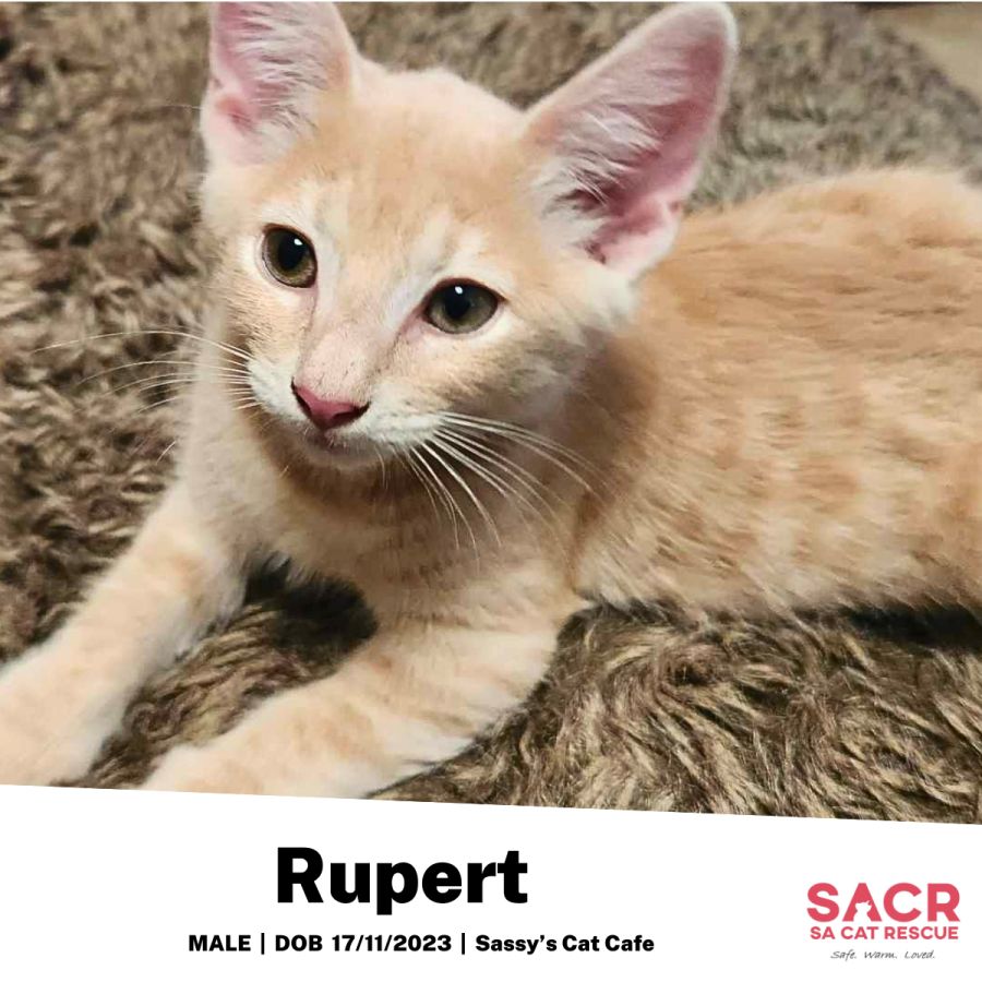 Meet Rupert, a charming and handsome fellow who is all about love. Rupert is the poster boy for kitty affection with his intense purring and desire for cuddles. He's a charismatic companion, and with his affectionate demeanor and playful antics, he's sure to keep you entertained and fill your home with love.