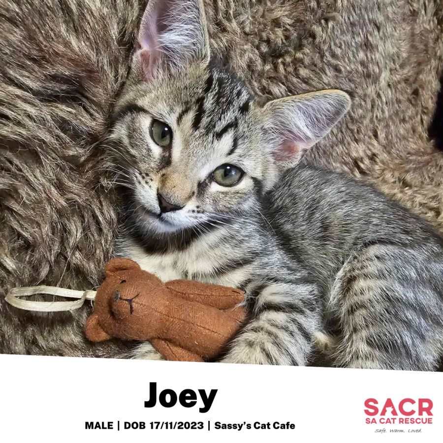 Joey's adoption fee is $180 which includes desexing, microchipping, parasite prevention, and F3 vaccination.