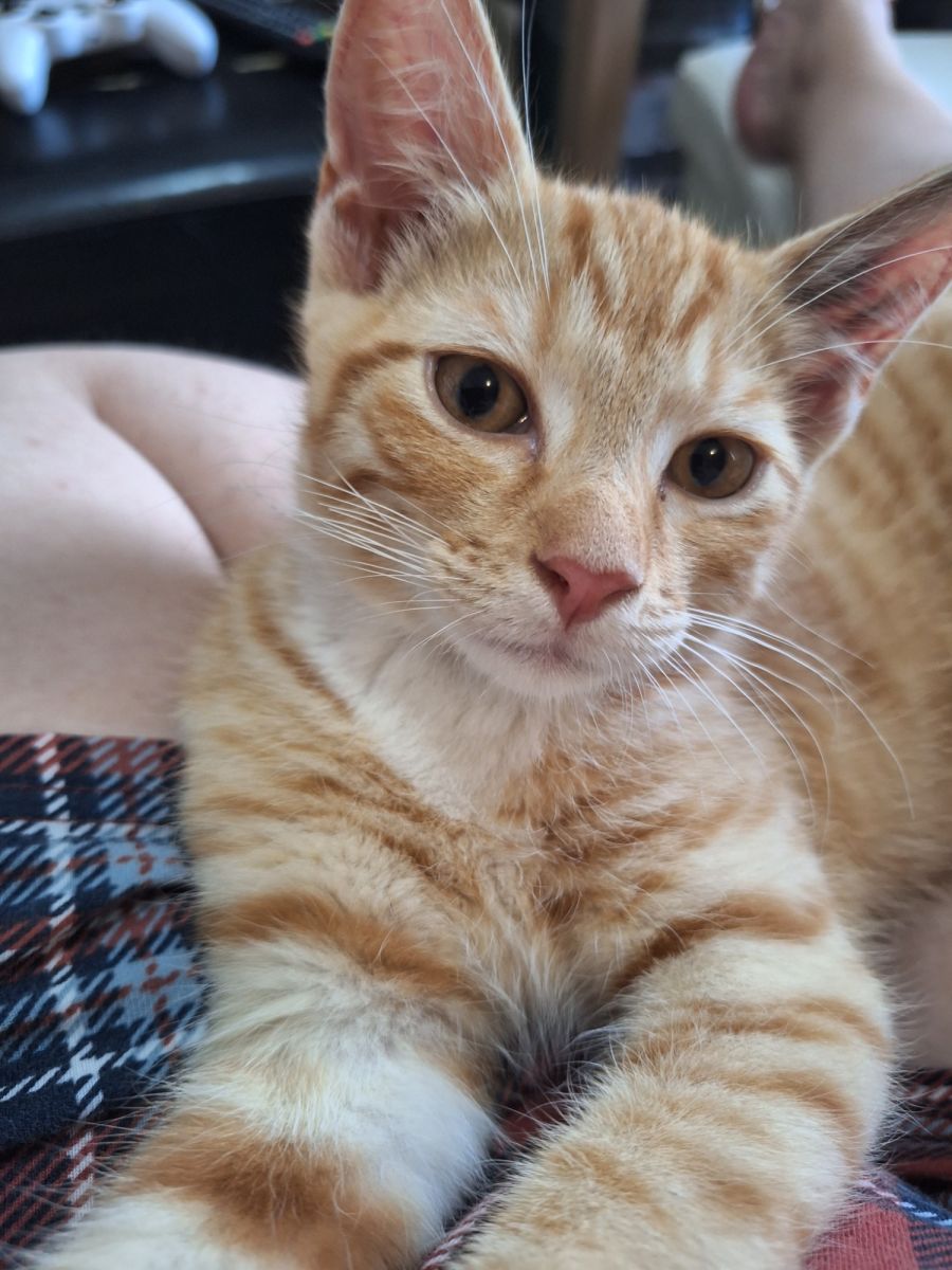 Hi, I am the ginger ninja known as Fergus. I love to come and sit with you to see what you are doing at the computer or on the lounge. My favourite thing though is playing with my foster sister Speckles. The two other cats that live here aren’t sure about our antics, but they do play with us too sometimes.