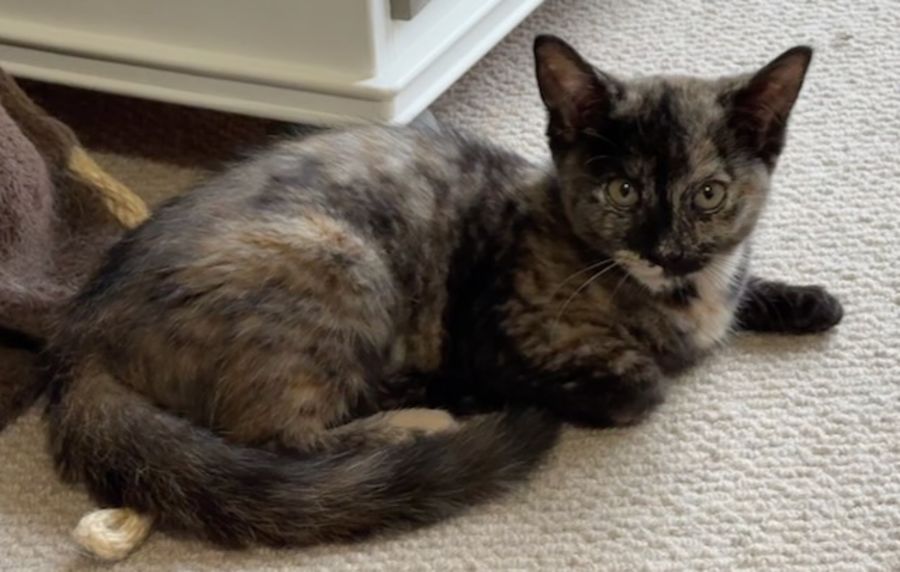 Introducing Annie, a female kitten with a shorter Tortoiseshell/calico coat. Initially shy at first glance, Annie's personality quickly shines through as she opens up to those she bonds with, loving pats and brushes. She is a cheerful kitty who loves running around and wrestling with her sister Elsie (also for adoption).