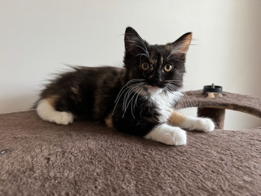 Meet Elsie, the heartwarming female kitten with a medium hair Tortoiseshell/calico coat. This sweet furball is full of affection and eagerly awaits to greet her future family with the sweetest little meows. Cuddly and engaging from the moment you meet, Elsie is a loving companion ready to shower you with warmth and attention.