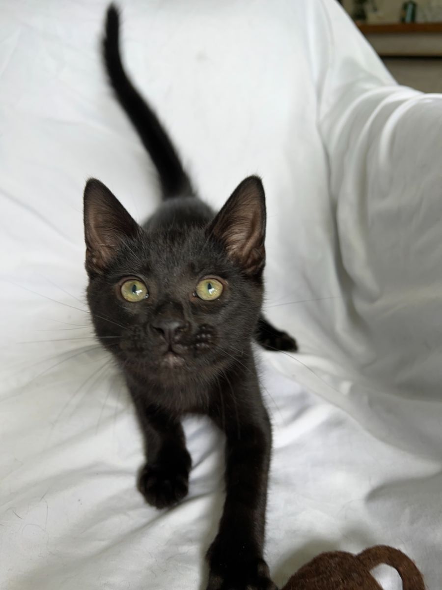 That is, until he finds his forever home with a forever name! And whoever adopts this little one is going to be so happy with their choice – he’s a beautiful boy. He’s all things kitten (cute, playful etc) and he loooves butt scratches!