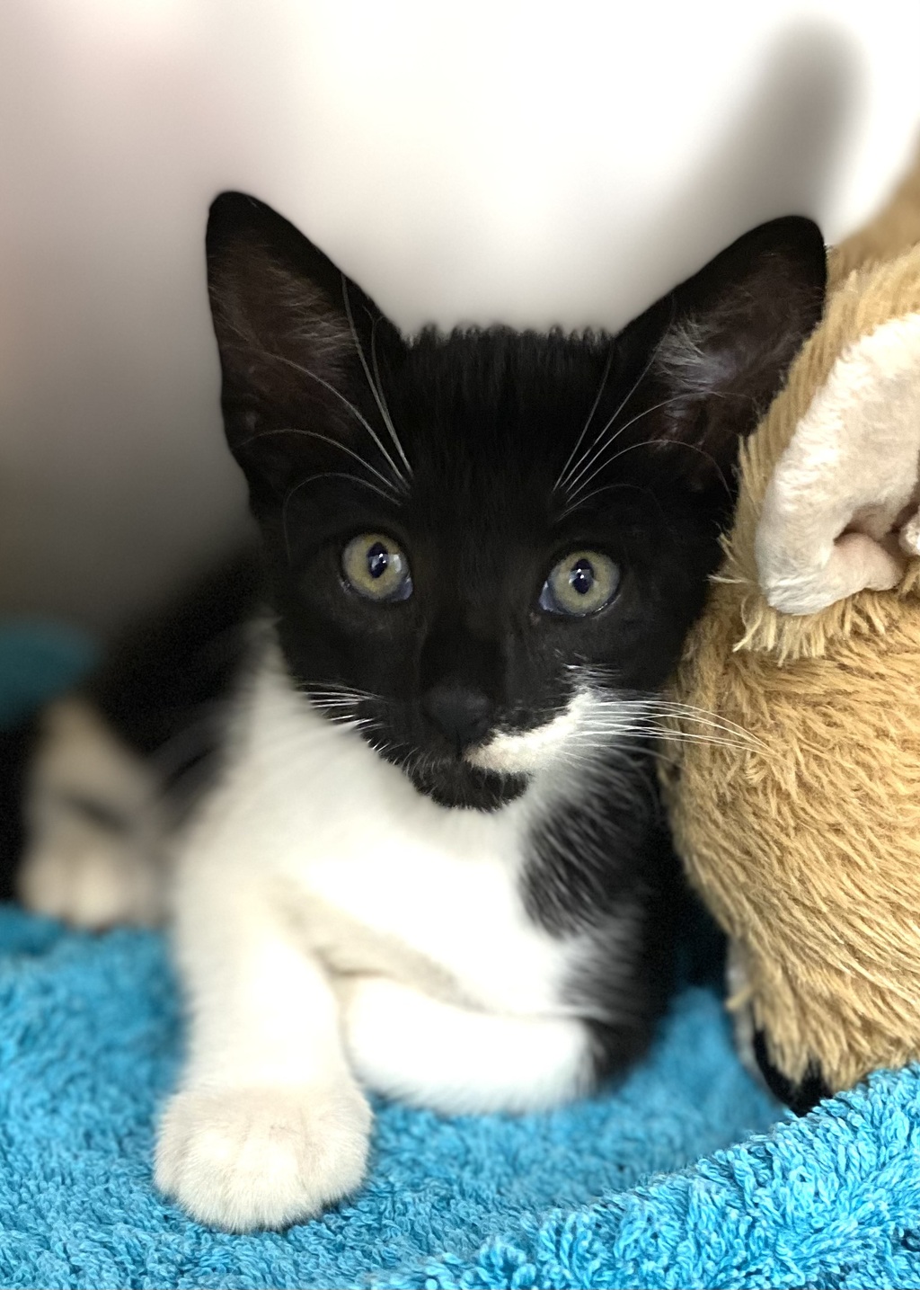 Hello, I'm Arlo, a kitten with a heart full of playfulness and a spirit brimming with curiosity. I'm the epitome of goofiness, making funny faces and doing silly antics that will have you laughing in no time. I'm quite independent, exploring my surroundings and discovering new things. But don't let my independence fool you, I'm also a cuddly furball who loves snuggles. My energy is contagious, and my loyalty unwavering. I'm a sweet, friendly companion who's always ready for an adventure or a quiet evening by your side. Adopt me, and I promise to fill your life with laughter, love, and endless fun.