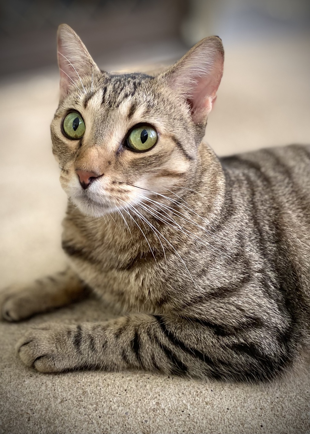 Meet Bronte, the most affectionate girl with a heart full of love! This beautiful cat is on the lookout for a forever home where she can indulge her curiosity and bask in affectionate pats. Bronte's striking appearance is only matched by her adventurous spirit- she's always ready to explore and discover new corners of her surroundings. With a penchant for companionship, Bronte is sure to bring joy and warmth to any household. If you're seeking a feline friend who's is delightful, consider welcoming Bronte into your home for a lifetime of shared adventures and endless pats!