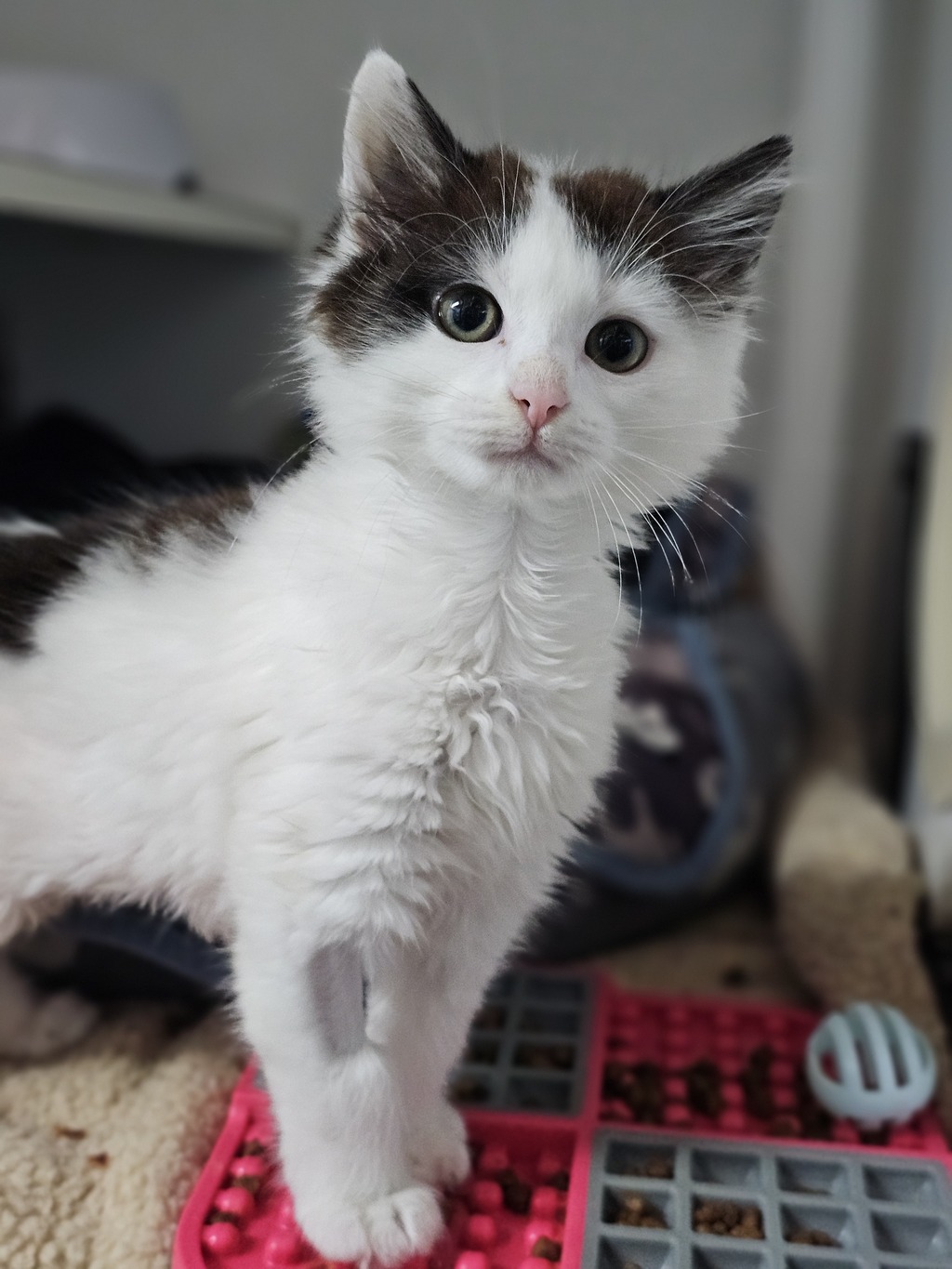 I have perfected the art of the irresistible purr. It's like my secret weapon for getting all the cuddles and chin scratches I could ever want. Life's just one big, exciting string of moments, and I'm here to make every second count - whether I'm chasing my tail or sharing some purr-fectly quiet time with my favourite humans. So, if you're up for a bundle of furry fun and a lifetime of companionship, please consider adopting me!