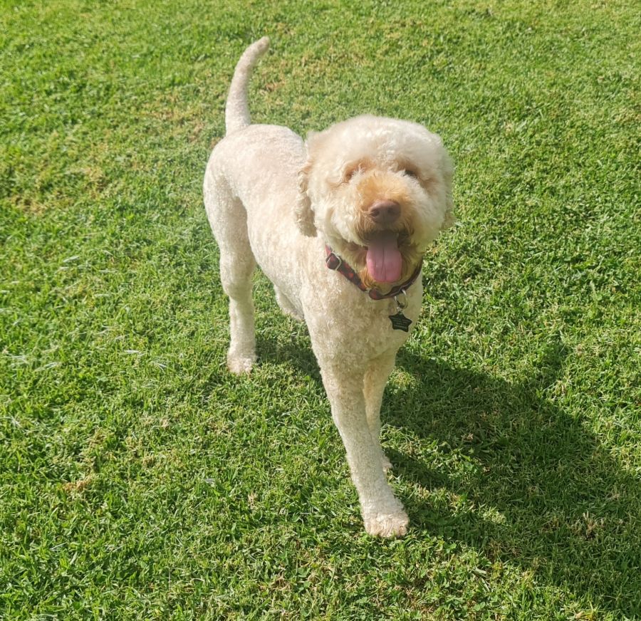 As a typical lagotto, Milo loves water and enjoys a paddle when given the chance. While he doesn't shed, he requires regular grooming and clipping every 8 weeks to prevent matting. He loves to run and it clearly brings him pure joy! He always has a huge smile on his face when offlead at the local fenced park.