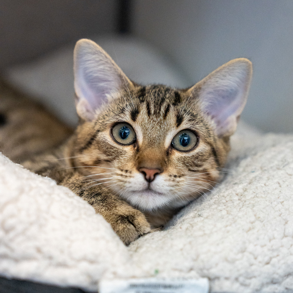 Puddles is a shy tabby kitten who is looking for a patient and understanding owner to help her come out of her shell. She may be a bit timid at first, but with the right care and environment, she is sure to blossom into a loving and affectionate companion.