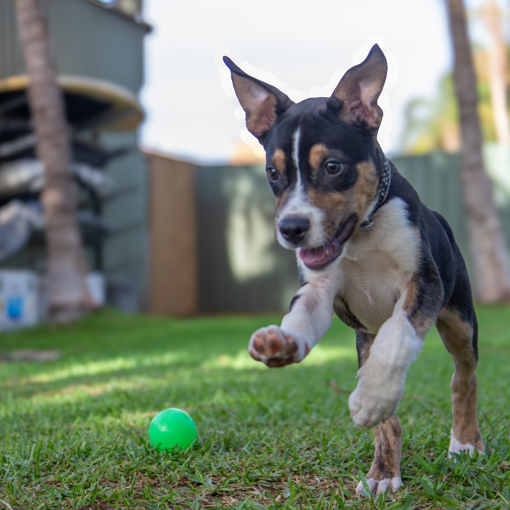 My name is Pita, like as in bread, but it could have been the name of an acrobat or somersaulter as I love jumping off and being caught by my foster carer. Good trick, eh? But a rose by any other name is still a rose. Although a Pilbara special by lineage, I am a lovely young boy starting out in life and looking for love. Is that you? With my coat of many colours, I am beautiful and am loving and listen when my foster mum tells me things and I am good with other dogs. I mean, what’s not to like? I am good with my toileting (pads) and eat whatever is put down for me. My carer says I have a wicked appetite but I will wait to be given the word to start. You can see I am not fussy. I amazingly sleep through the night and I am a good car traveller and just sit and watch the world go by. When asked to describe me in one word, my carer said “playful” which in dog lingo means good to have around to shake things up a bit. I am good company. I might only be little and young, but hey, I learn fast. I like to follow the resident Border Collie around learning all the dog smarts! I am an extrovert and I am looking for a loving home that would appreciate me. If you would like me in your life and are patient whilst I learn, apply to adopt today!