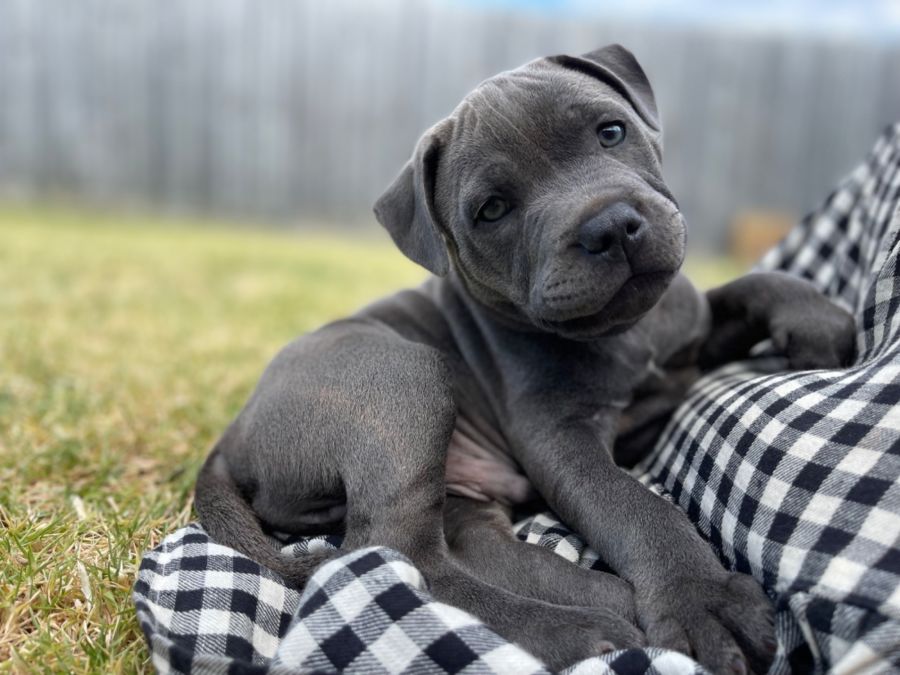 Suede is utter perfection. Born in our care, Suede is a Staffordshire Bull terrier who has been raised by his mum with his six litter mates.