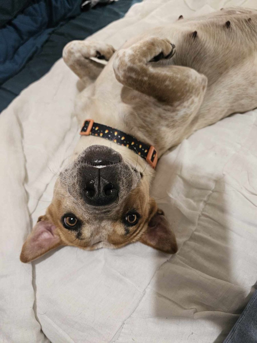Known for her sweet nature, Daphne instantly connects with everyone she meets, be they humans or animals. She's a fan of snuggles fron her human companions. She enjoys the company of feline friends, too, making her a rare all-animal-friendly dog.