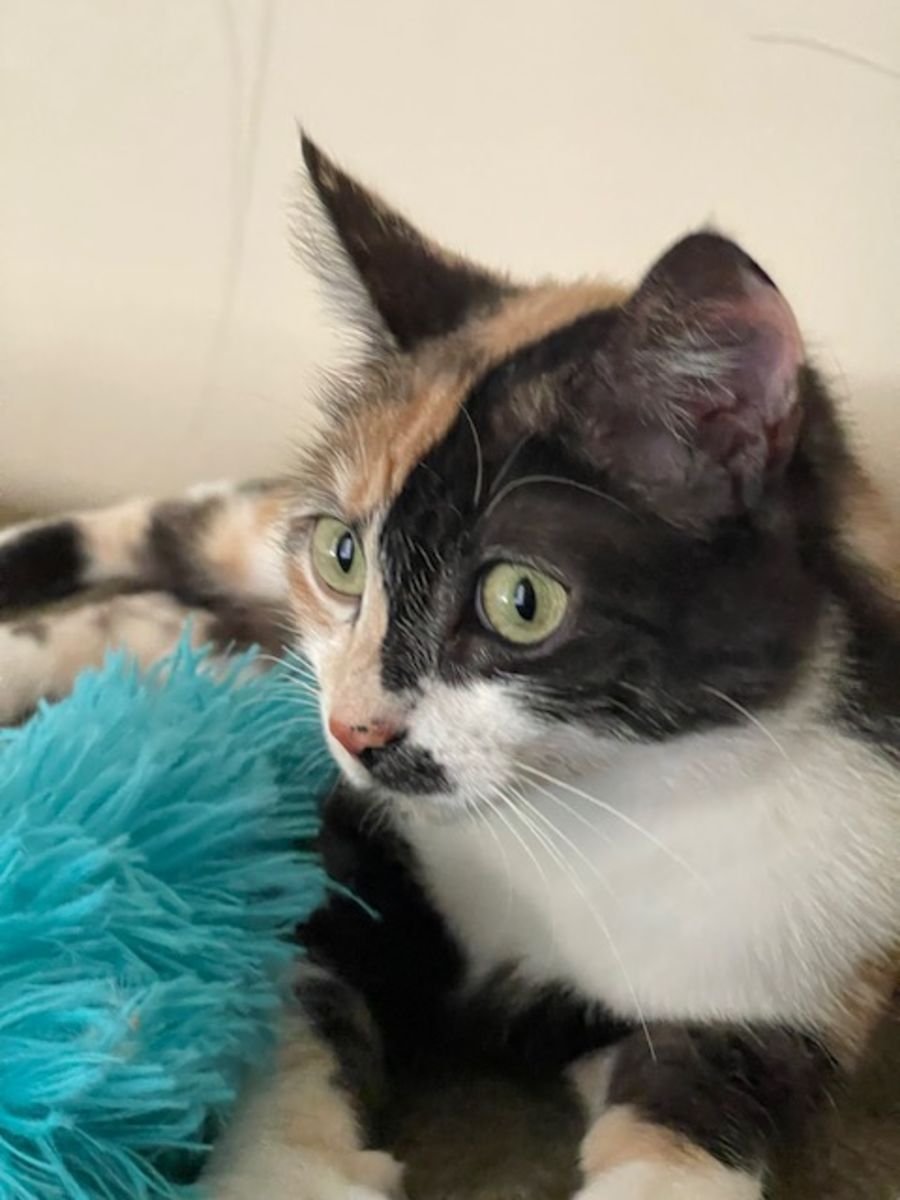 She is THE most beautiful, affectionate girl. Always ready for a smooch, a chin scratch or a pat. She will find where you are and hang out nearby.