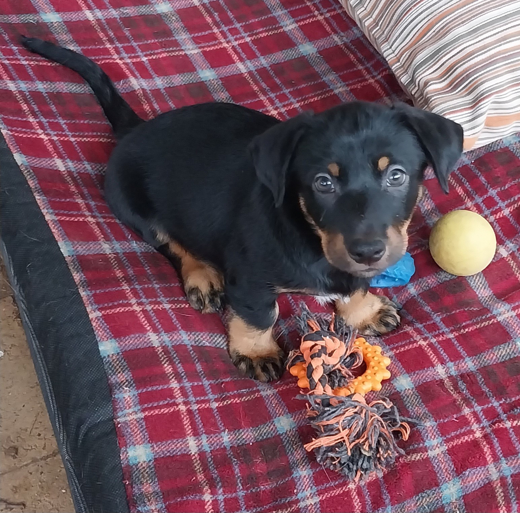 Tonka is a happy, well adjusted, intelligent little boy who looks as if he is smiling all the time. He has very short legs and bounces his way through life keeping up with his siblings with no problems. Both his parents were Jack Russell X Kelpie so although he is going to be small, he is best suited to an active family with time to train him. He is great with other dogs and is learning to respect cats and chickens.