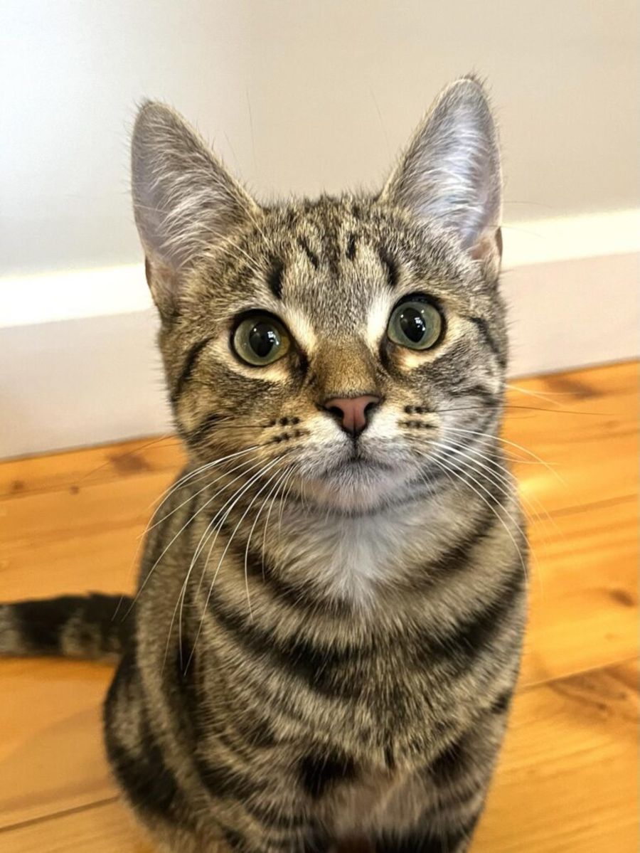 This adorable Tabby girl is Lottie! She is every bit as sweet as that gorgeous little face of hers. Her coat has a really amazing pattern too & if you look closely, you may find the number 23 etched into it’s design!