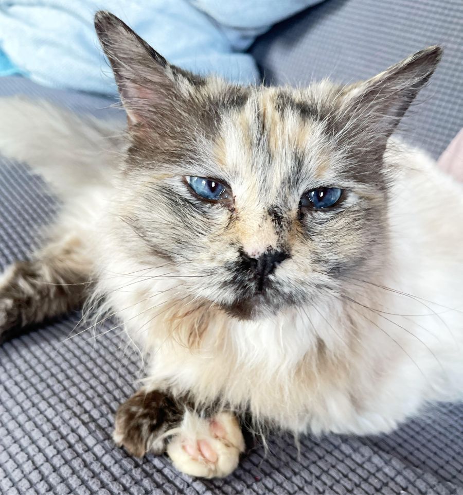Meet Tilly, a beautiful Ragdoll from the 2nd Chance Cat Rescue, who is about to turn 12. Tilly is a gorgeous kitty with a spirit that shines brighter than any gem. Her twinkling eyes speak volumes about her life's journey, which even though has been a little rocky, has not dampened her love for human interaction.