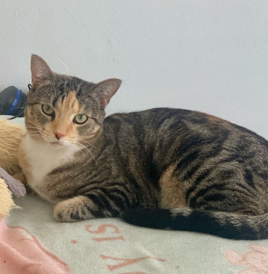 Evy is a very easy going, gentle and sweet cat, who needs a bit of time to settle in. She loves to sit in cat trees and watch what goes on around her. Once you have gained her trust, she will come looking for you and loves to rub up against your legs. She is currently being fostered with her sister Goodie and lives in a household with other cats and dogs. She would do well in a quiet household with people giving her the time to explore on her own terms.