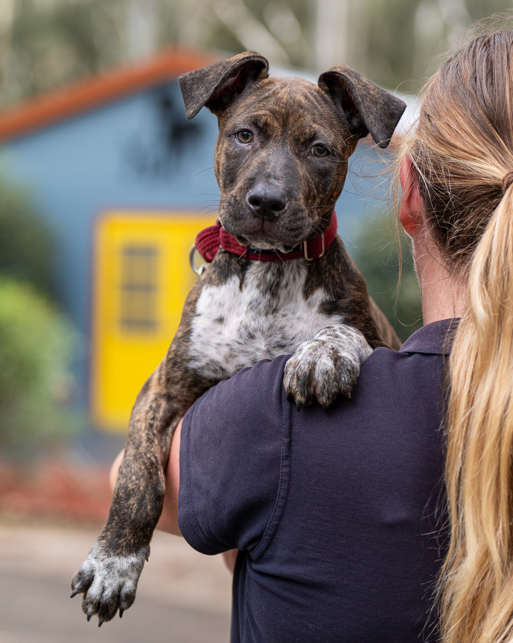 Nehemia, a 3-month-old Staffordshire Terrier, stands out with her distinctive dark brindle coat, a mark of her unique and captivating charm. This sweet and playful puppy is on a mission to find her forever home, promising to bring boundless joy and love to the lucky family that welcomes her. With Nehemia, you'll discover a delightful companion with an endearing presence and a coat that exudes elegance and individuality.