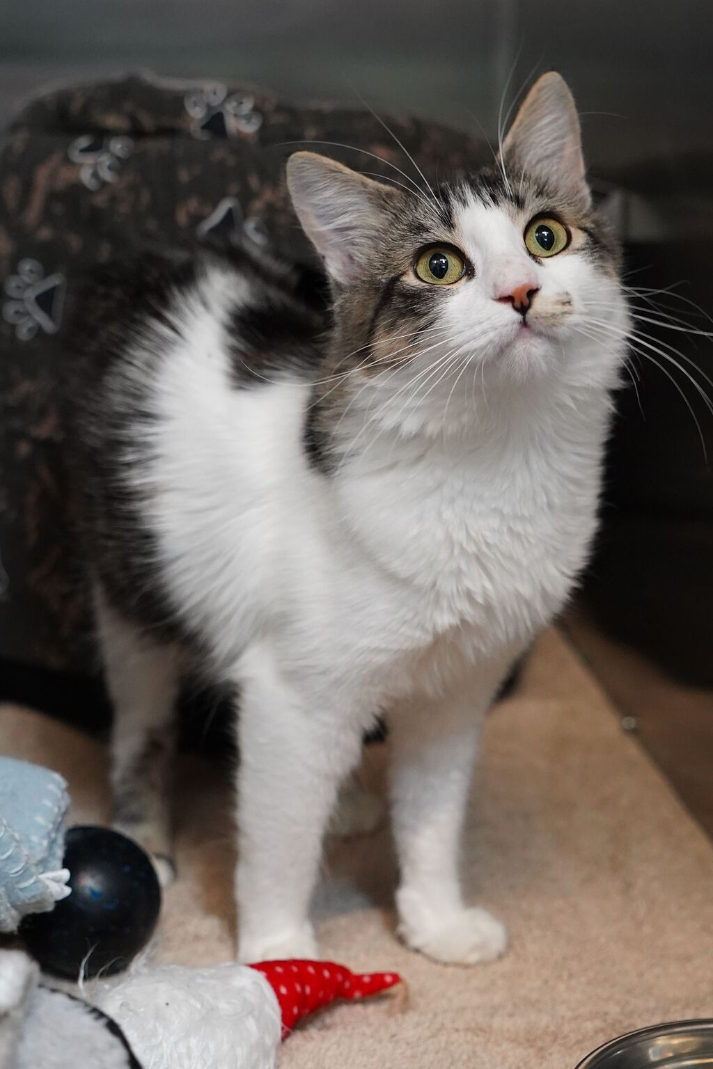 Eleanor is a lovely cat with a personality as beautiful as her long (medium length) luscious coat, and her gorgeous shiny eyes. She has a very sweet and gentle personality, which is occasionally overtaken by her inner playful kitten. Eleanor would suit any home environment; she could live with sensible kids and other pets if provided a slow introduction. This super sweet girl is waiting very patiently for her forever family to walk through our doors.