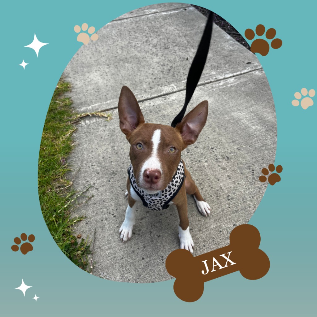 Jax is a sweet, intelligent, and lively pup who is ready to find his forever family. From a large litter, Jax has been around dogs big and small, (including his current foster siblings), so is suited to an active household with another doggy friend who can show him around and teach him the ways of the family.