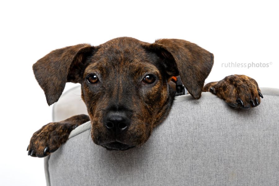 Hennessy has been in foster care as an only dog. We feel her confidence would grow faster in a forever home that has another confident and social adult dog, but she will be fine as an only dog too. In either case, she will need someone home more often than not due to her young age. She has been ok left home alone for a few hours here and there, but does get up to puppy mischief if you give her too much access to things while you’re out. Hennessy was in the pound with multiple dogs and has met some other dogs while in care. She can be a little nervous at first, but warms up very quickly and has lovely doggy etiquette. She will need an owner who can continue to socialise her with other friendly, known dogs preferably in the form of play dates.