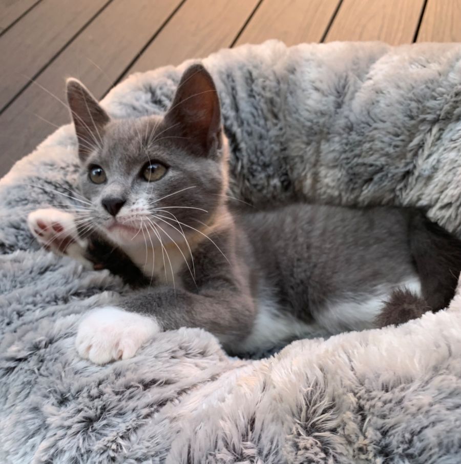 Meet Denver, a stunning blue male cat with a heart as vibrant as his coat. His charming personality is enhanced by his social, playful, and loving nature. A generous provider of cuddles, Denver has an abundant capacity for affection which he joyfully shares with everyone he meets.