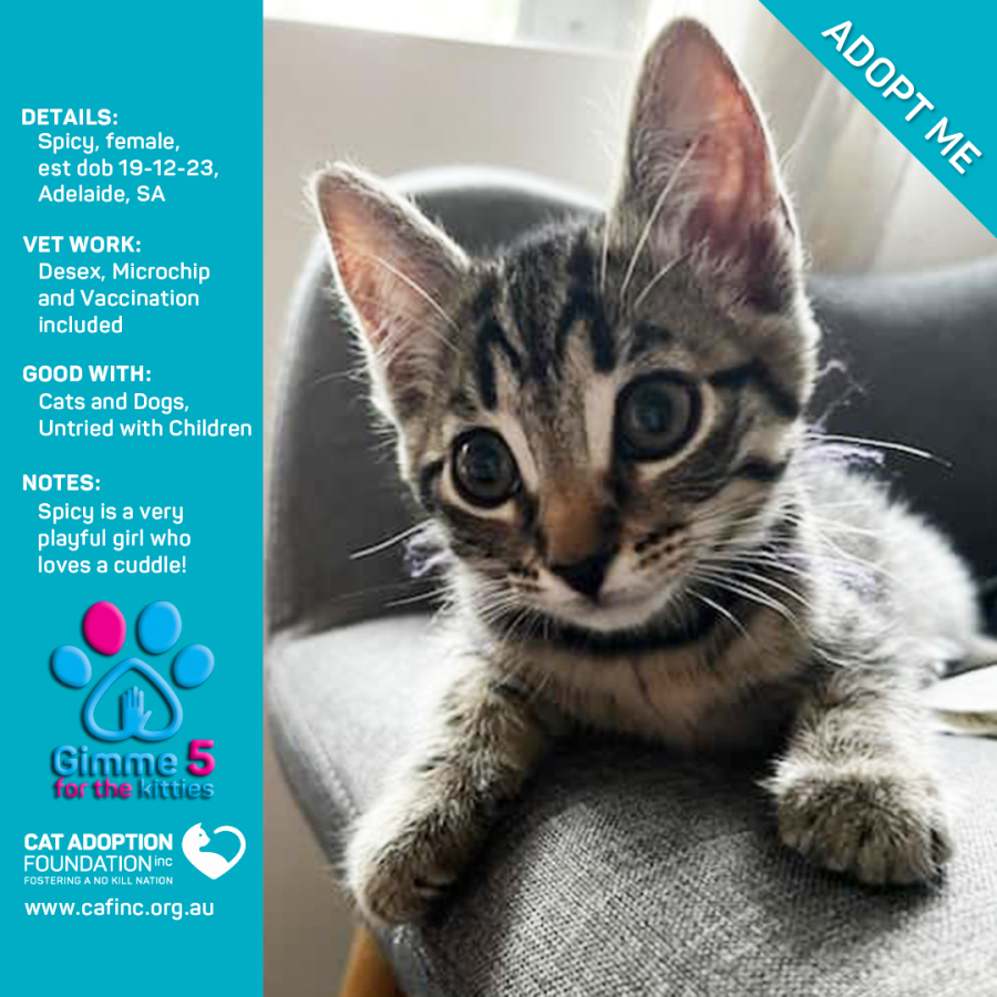 To adopt this kitty please contact Sayla on 0422 652 837 or email us at info@cafinc.org.au.