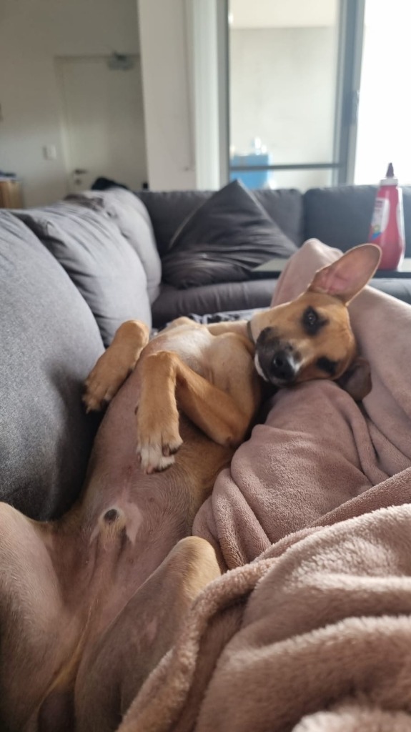 He loves adventures to the beach to cool off, playing with his mates and snuggling on the couch.