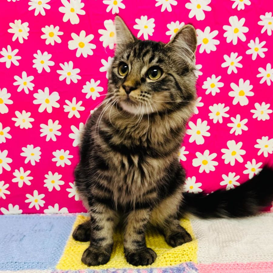But hey, it's not all about snacks and shenanigans. I'm a playful pal too! I love nothing more than romping around with my siblings, chasing toys, and engaging in a bit of friendly roughhousing. And when it's time to unwind, I'm all about those snuggles. Seriously, if you're looking for a snuggle buddy, look no further. I'm Mr. Allee Cat, and I'm ready to bring a whole lot of laughter and love into your life. So what are you waiting for? Let's make some memories together!