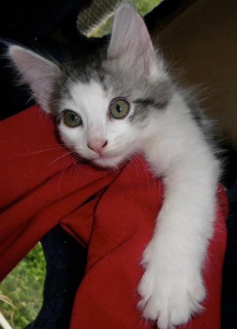 Ruby is a 7 week old female white and siver tabby. She loves to play and jump around with the other kittens then snuggle up for a pat and a snooze! ruby is for viewing only and will be ready for adoption at the start of april