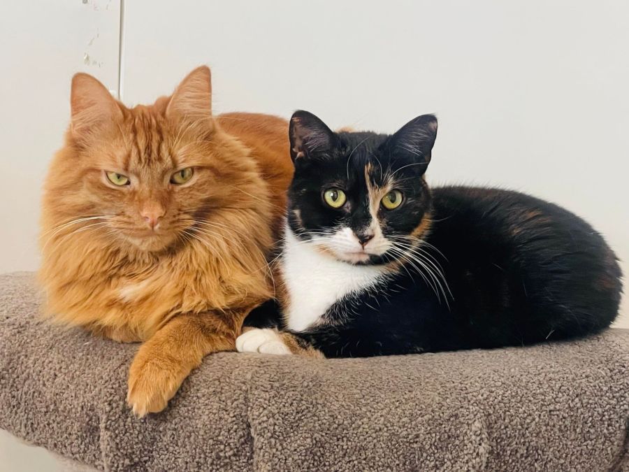 Together, Taylor and I are ready to bring some benevolent vibes into your home. Whether we're lounging on your lap, chasing toys, or just soaking in all the love and affection, we promise to make every moment with us a memorable one. So, what do you say? Ready to welcome a little bit of ginger floof and torti magic into your life? If you're up for snuggles, playtime, and endless loving purrs, then we're the dynamic duo for you! Let's make some wonderful memories together, one cozy nap and playful pounce at a time. We can't wait to meet and love you—our new favorite human. 🐱💕