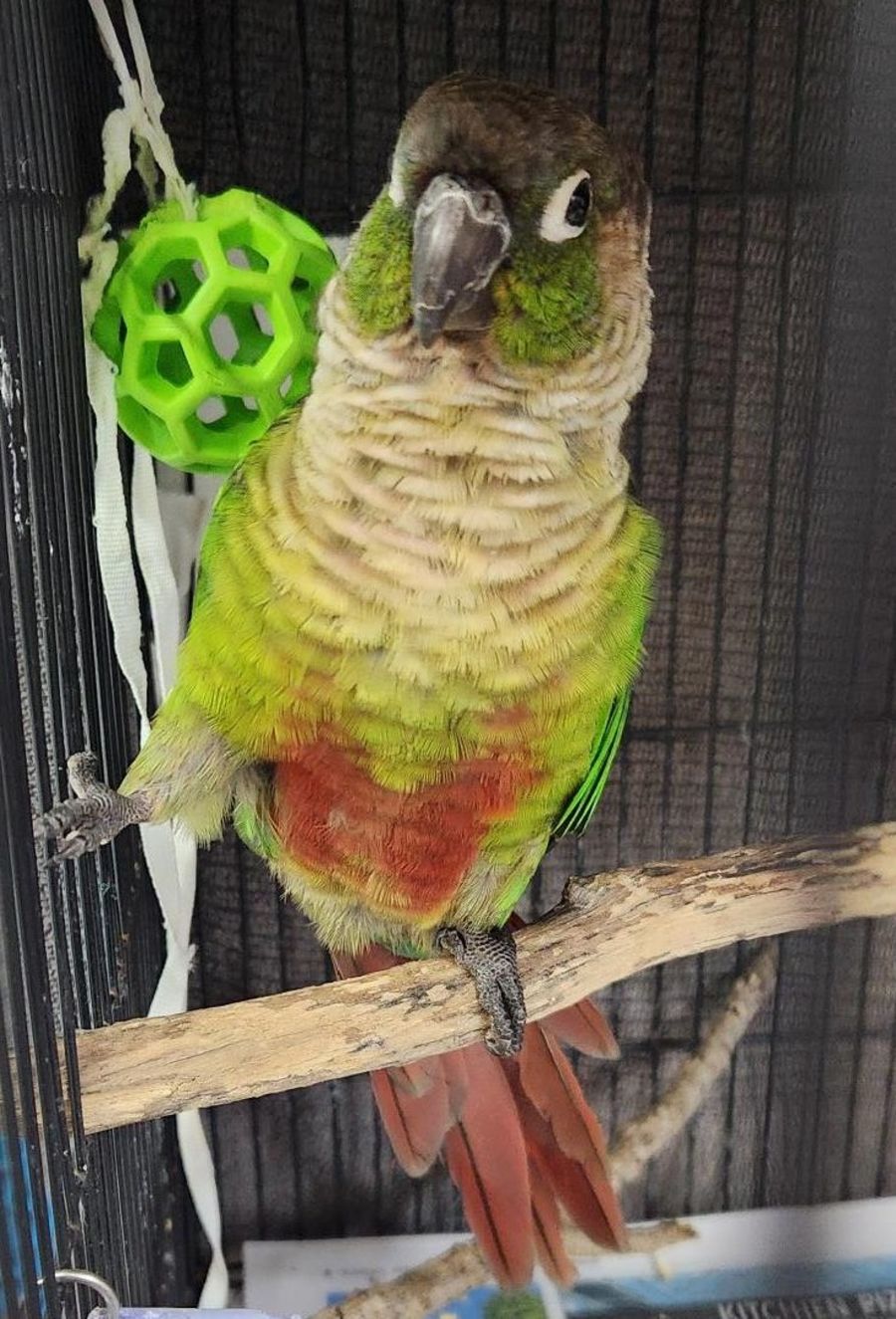 Hello there, I'm Chippy! I love a good chirp and have a quirky personality. I'm searching for my new home where my forever family can provide me with lots of entertainment, things to chew, room to fly and be apart of activities around the house. I do need training and love a good treat so positive reinforcement helps me learn super quick what you want me to do when I am with you!
