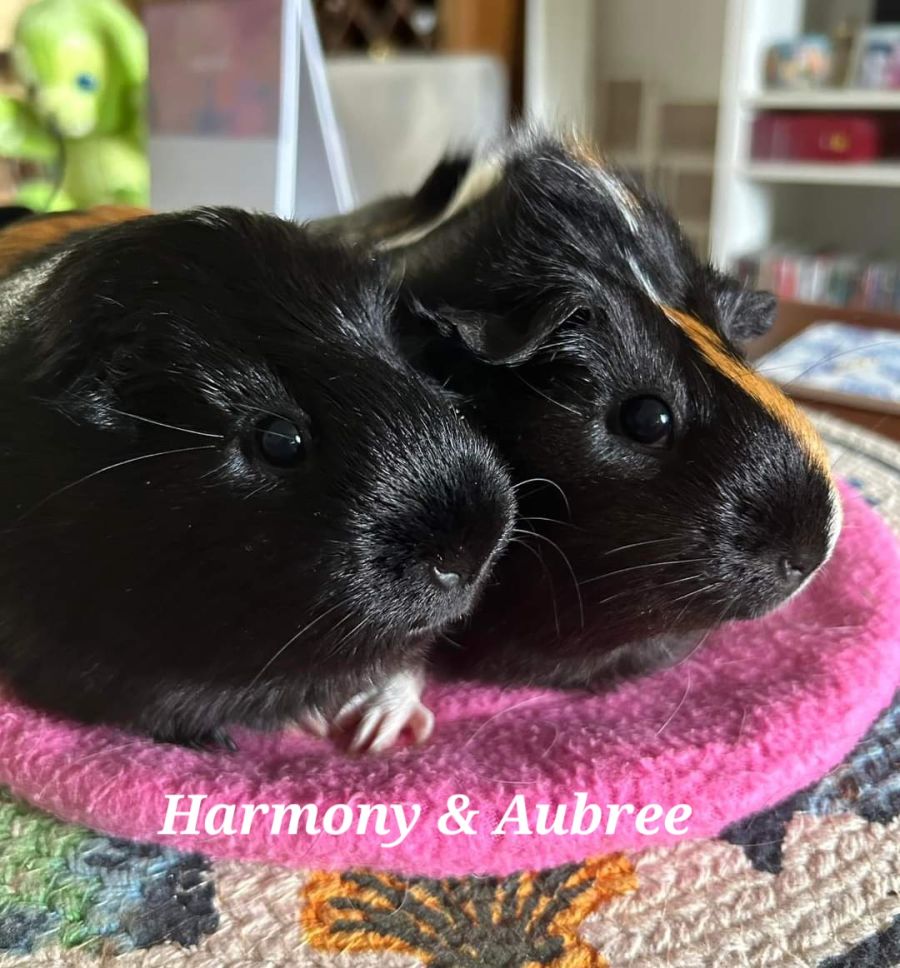 Aubree (smooth black and ginger - 1y 2m) and Harmony (black, ginger & white ridge - 1y 4m) are both from the NSW Rescue and are just such loving little cuddle piggies who absolutely deserve an amazing forever home.