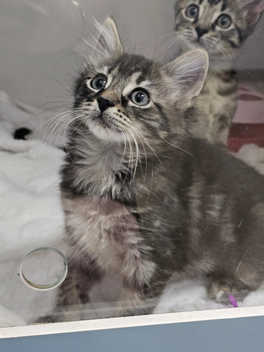 We're Romie and Whiskey, a dynamic duo of adorable bonded kittens looking for our forever home! We're both young, playful, and bursting with energy. Our antics will keep you entertained for hours, and our affectionate purrs will warm your heart.