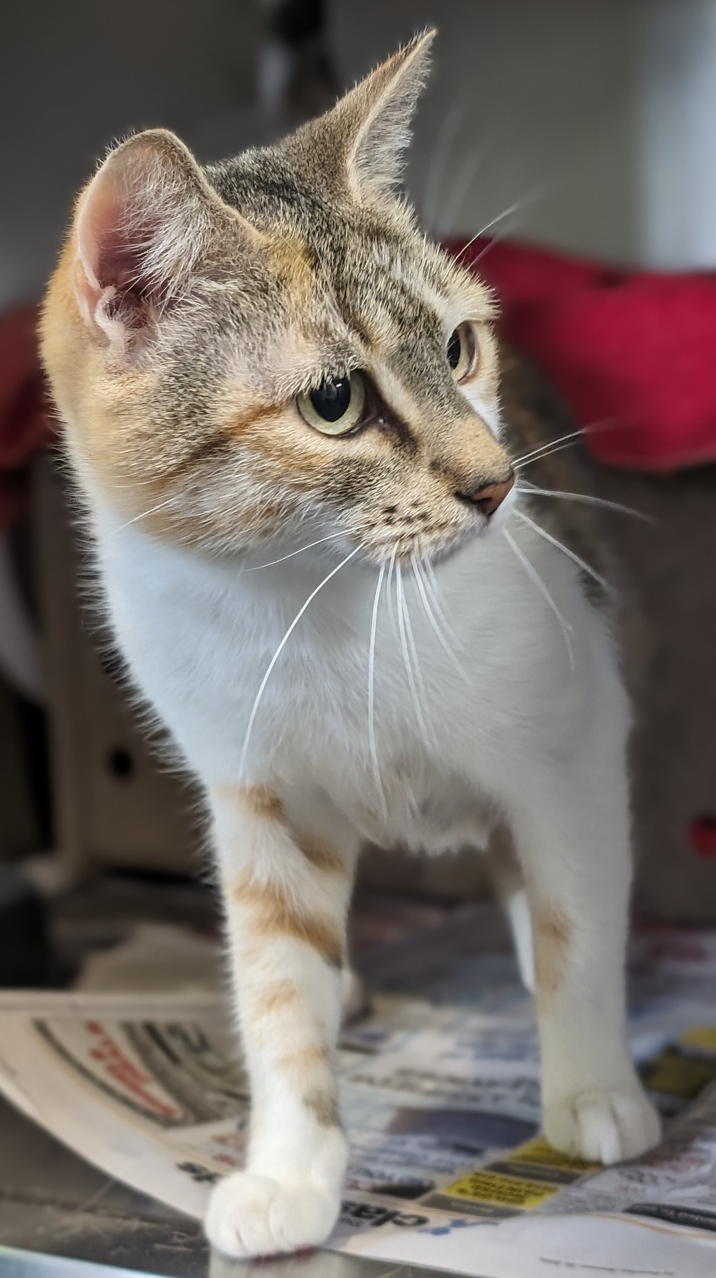 At just 2 years old, Purrl Jam is already a legend in the making. With her striking DSH Torbie and White coat, she commands attention wherever she struts. Born to steal hearts and melt faces, this feline diva is more than just a pretty face - she's a force to be reckoned with.