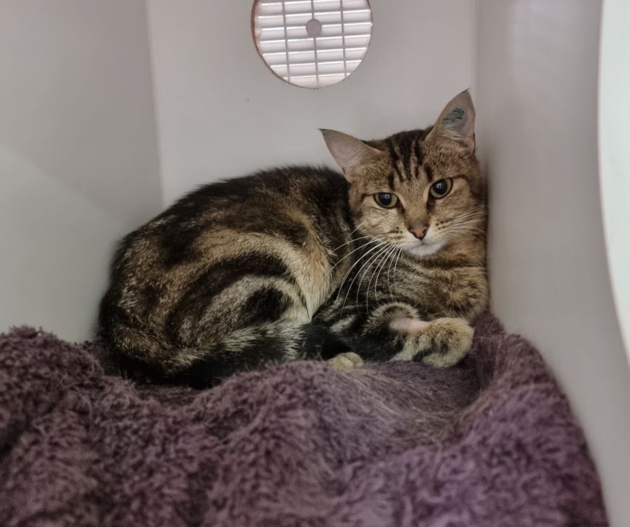 I am a timid, sweet girl. I arrived at the shelter with my kittens and now it's time for me to find a loving forever home.