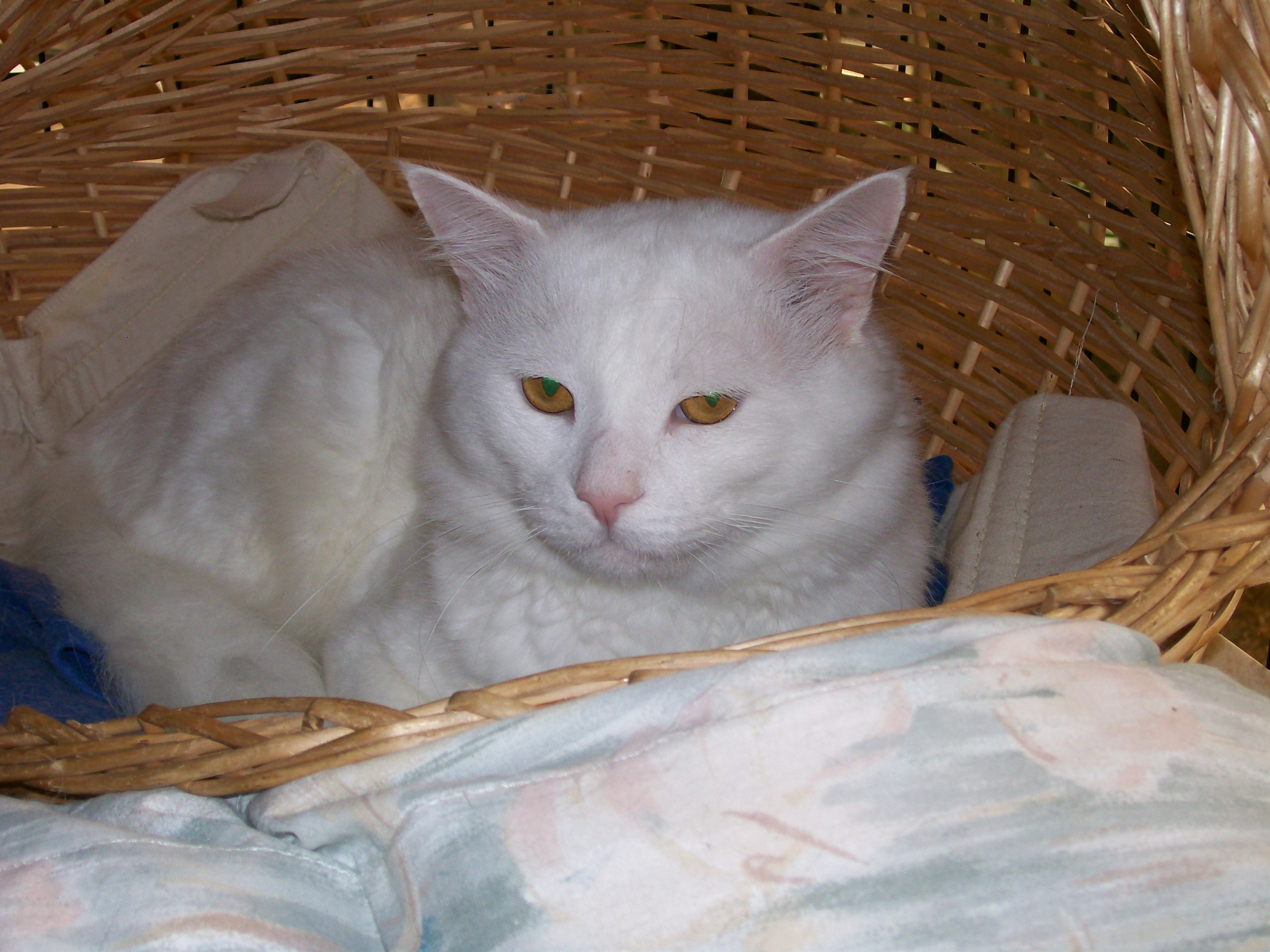 Bundy is a very striking looking medium long-haired male and about 4 years old. Before coming into our care he spent most of his time living in a small cage - rarely leaving it. He appeared very depressed and showed no response to stroking, didn't purr or meow, leave his bed or show any interest in food for several days. He then began to eat but flinched away from any attempt to stroke or brush him and would return to his bed as soon as he finished his meal. Gradually over 6 weeks he began to take an interest in his surroundings and one morning walked over to his carer and while waiting to be fed started some leg rubbing with a soft little purr. Now after 10 weeks of tlc bundy has become a very friendly and normal cat. He would need to be an indoor cat due to his white coat and is hoping a kind person will be able to give him the happy new home he deserves