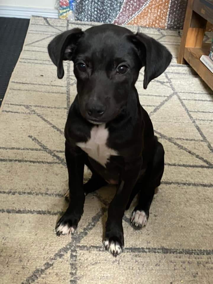 She really is a lovely, sweet pup. She’s a smart learner, not fully house trained but uses the puppy pads really well. I’m putting her in a smaller playpen at night and she’s not going to the bathroom at all, waits to be let outside in the morning. She loves cuddles, especially on the couch with you! She is very quiet and calm for a puppy. Knows ‘sit’, she will sit and wait for you to say ‘good girl’ before she eats. She loves her food and treats. I’ve taken her on small walks with a harness, she loves being outside. Loves squeaky toys and running in the garden. She’s delightful!