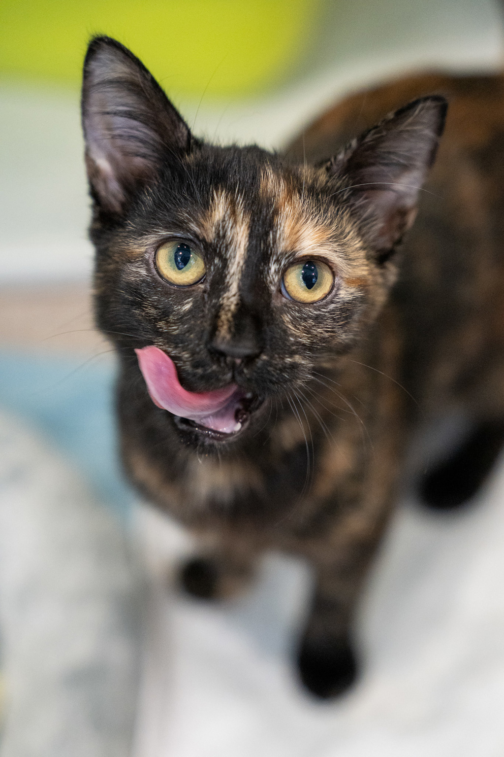 Alala, with her captivating dark tortoiseshell coat, is a gentle and affectionate kitten once she overcomes her initial shyness. She thrives in serene environments, responding best to a soft touch and a calm demeanor. Given time and a sense of security, Alala reveals her deeply affectionate nature, craving snuggles and closeness.