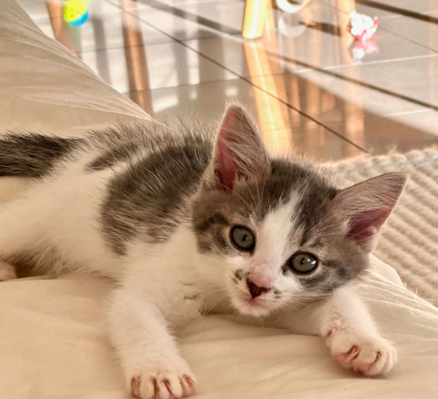 An adorable ball of soft fur with glistening eyes that exude playfulness and joy. This cherished kitten is known for her sweet nature and dynamic energy, making her a delightful companion that'll surely bring extra jubilation to your home.