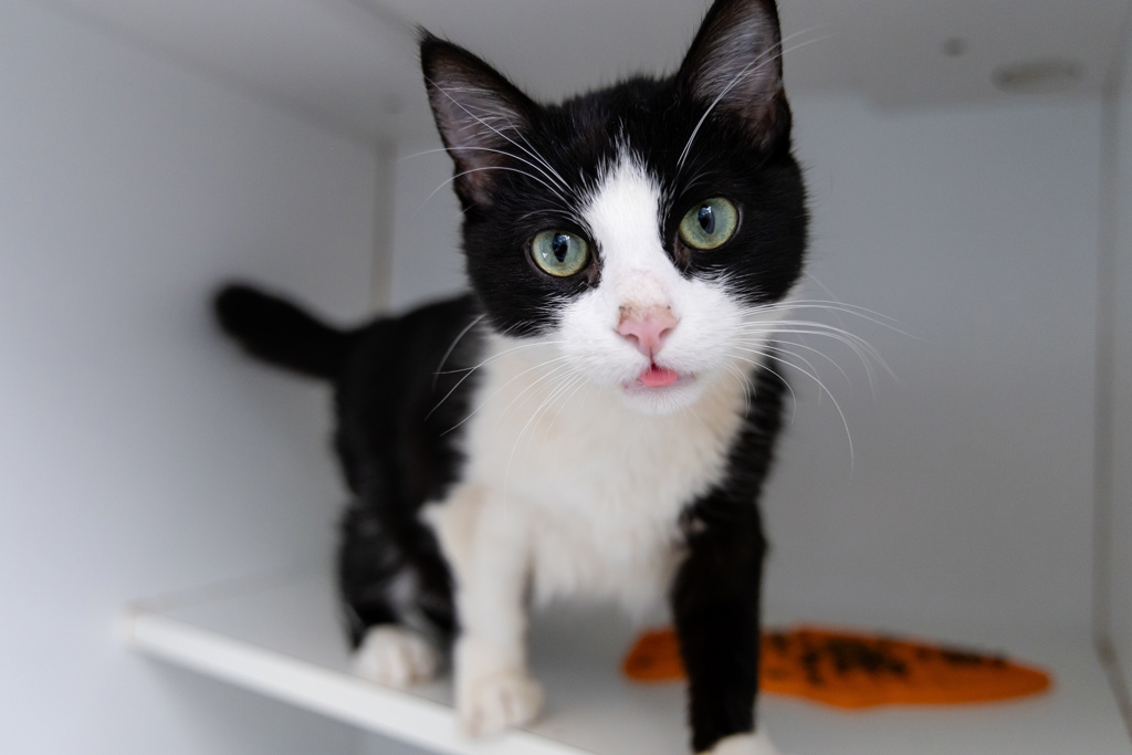 Hi, I'm Sylvester. I am looking for a kind and patient person or family to show me that humans are amazing. When I was younger, I didn't see too many people so I am still learning that humans are the providers of my delicious snacks! Once I get to know you, my shyness will turn into trust, and I'll be right there beside you, ready to share soft purrs and quiet moments. So, if you're looking for a gentle and quiet furry friend, please consider adopting me!