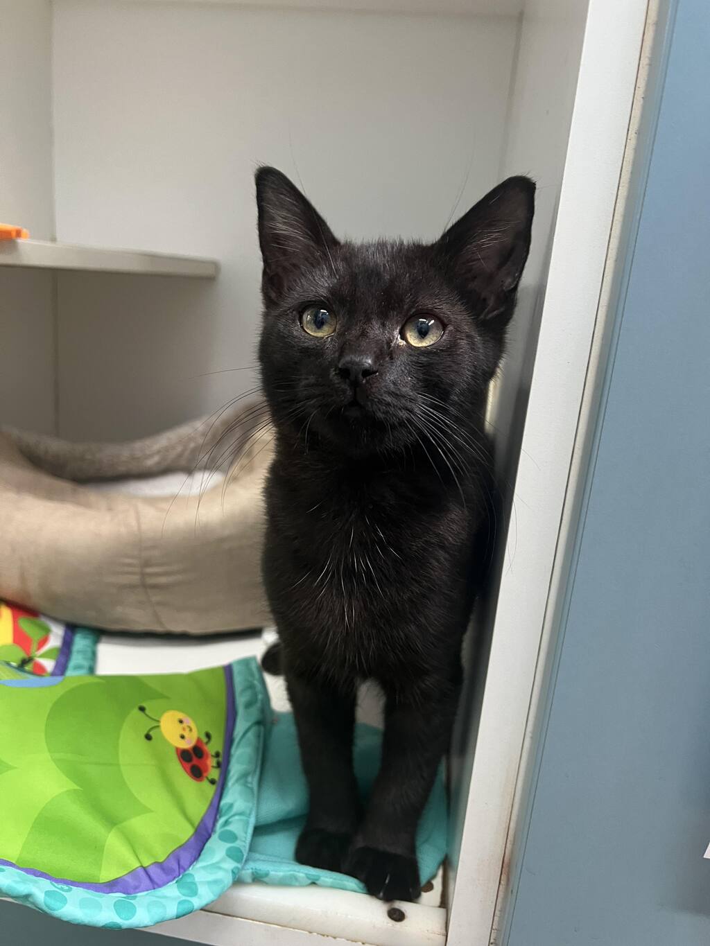 Hey there, I'm Calvin. I'm a friendly and affectionate kitten who would suit most homes! My playful paws are always ready to pounce on anything that moves. I love playing with wand toys and mysterious shadows on the wall! When I'm finished playing, I love nothing more than finding a warm lap to curl up in.