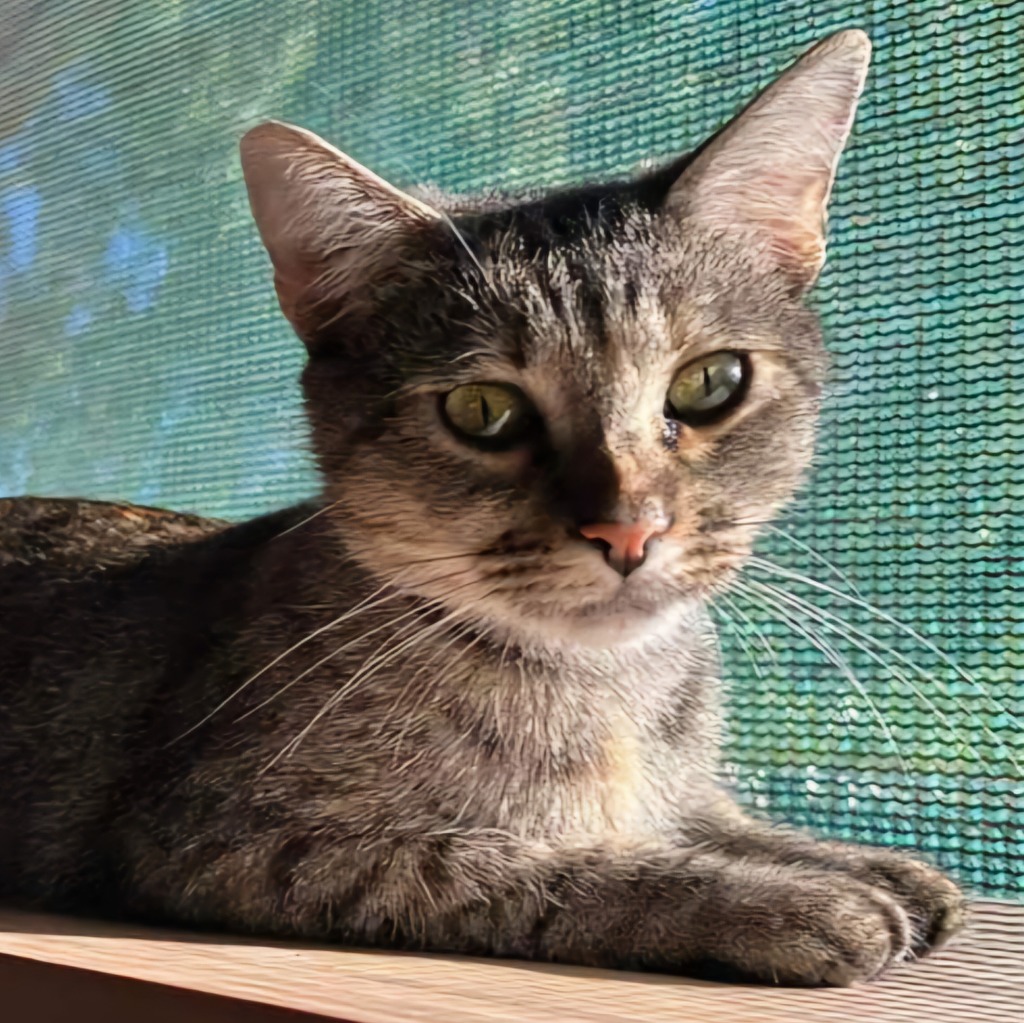 Lovely Michelle has pretty markings and such lovely green eyes. This gorgeous soul can take some time to come out of her shell, but given a settling in period she blossoms into an affectionate and playful girl who especially delights in her morning zoomies. She revels in getting pats and scratches from her trusted people and is adorably purry.