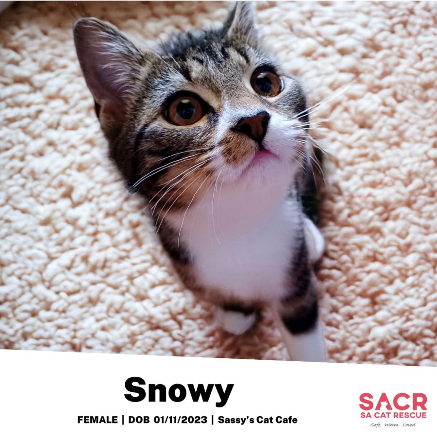 Snowy has an adventurous soul and a curious heart. She dreams of outdoor ventures, spending her days contently gazing out the window, imagining the intriguing world beyond. However, she has never ventured outdoors, balancing her adventurous spirit with her love for the comfort of home. Her ideal new family would provide her with a safe indoor environment that still enables her curiosity, such as a house with a secure backyard, balcony, or cat run.