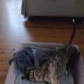 She’s a snuggler through and through. Once she feels ready, she’ll happily curl up on the sofa and rest her head on your lap, reminding you what companionship is all about. She’s a good eater, sleeps right through the night, and while she doesn’t love being left alone, she’s shown she can tolerate a few hours just fine.