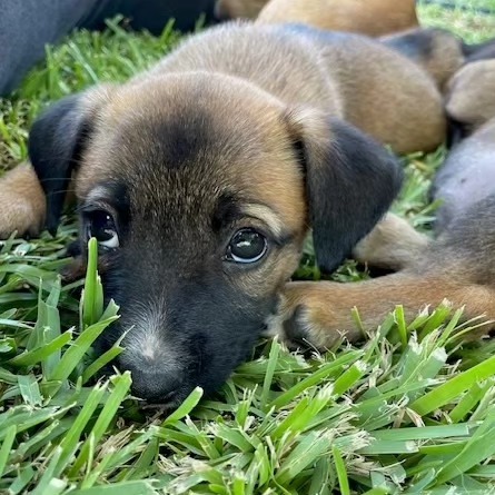 Little Dotty is a confident and adventurous little girl. What she lacks in size, she makes up for in bravery! Darling Dotty loves a cuddle and will climb on you to get one, then curl up high warming your chin. A perfect addition for our upcoming winter! Dotty thinks belly rubs are the best, especially after a meal, then she will fall asleep recharging. She is living with another mature dog and two siblings in foster care and enjoys their company, so would be a good fit for a family looking for a second dog. Equally, with lots of human attention and love she would thrive. Given she is a young puppy, she will need a family who can be home while she settles in, as she'll need a snack or two through the day.