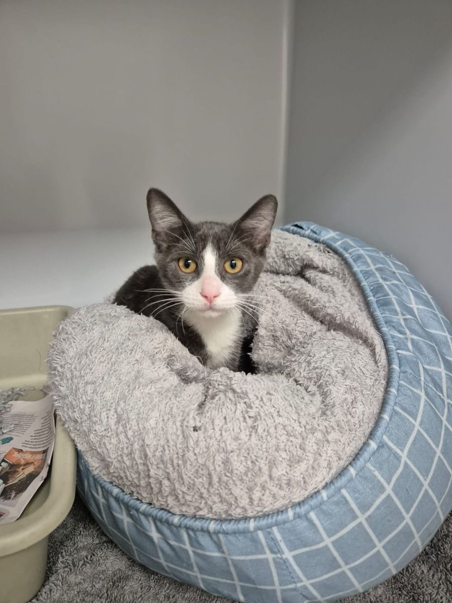 Introducing Gotham! Gotham and his sister Maggie arrived at our sister clinic in a state of severe malnutrition, infested with fleas and maggots. Thanks to dedicated care, they've been restored to health and are now seeking their forever homes. Gotham, a delightful fellow, adores cuddles and playtime with toys!