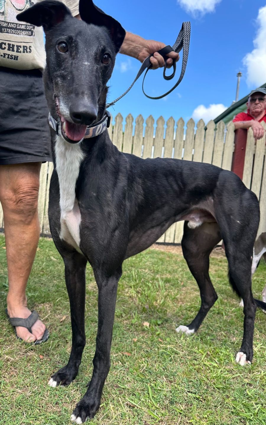 This dashing greyhound also loves spending time outside. From beach walks to café outings, Buddy Boo is on board! You might be amazed at how well he fits into your daily routine, making every coffee run an adventure and every beach trip a delightful escapade.