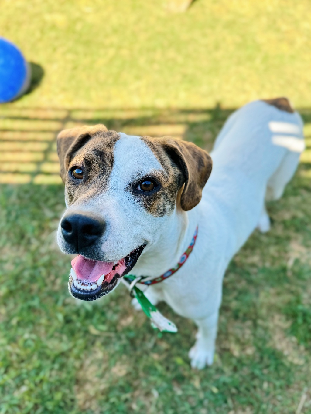 Billie could go well going to a home with another playful, well trained doggy friend, pending a meet and greet at the shelter. Dog savvy children may be ok also pending meeting, just because Billie can get a bit excited and bouncy. Billie is getting the hang of walking with a harness, and she has lots of energy to burn, so plenty of yard space for her to run around is also a must.