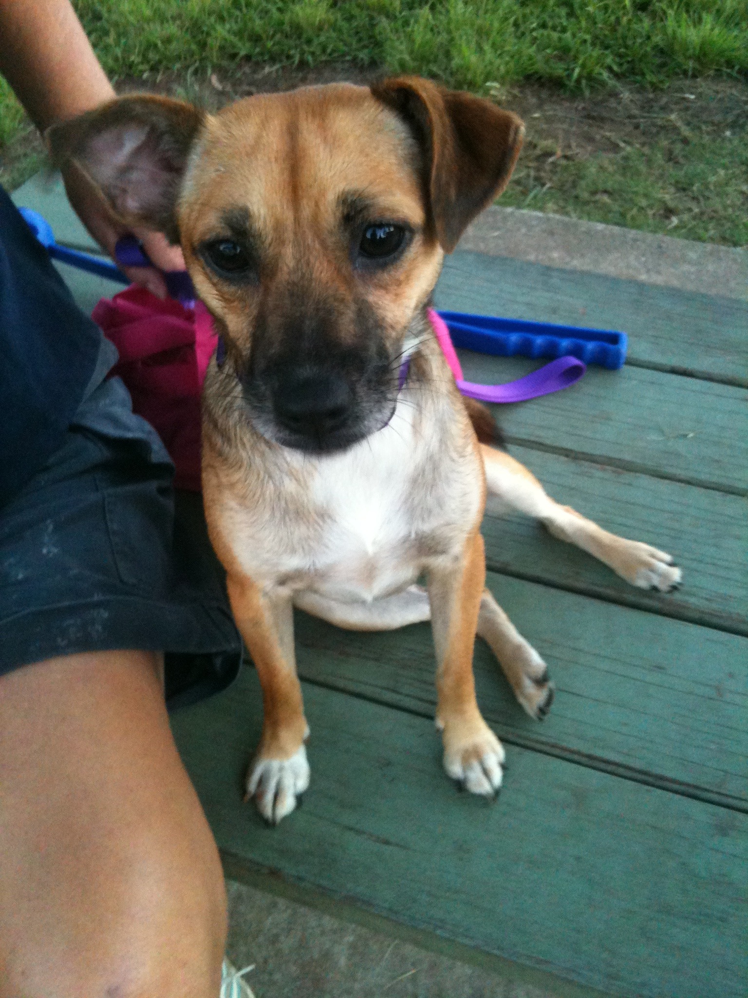 bini is a little whirlwind. . She loves to run and play but can get a little temperamental with other dogs and can loose her temper. She quickly quiets down when told though and goes back to playing without a care in the world. . Bini is good with both little and big dogs. Bini's foster brother is a maltese and her foster sister is a german shepherd and loves nothing more than to tear around the house playing and chasing her foster brother. Bini has basic manners but would also benefit from a little more training. . She does have luxating patellas however this has not slowed her down or caused her any problems. Please contact: tyleah