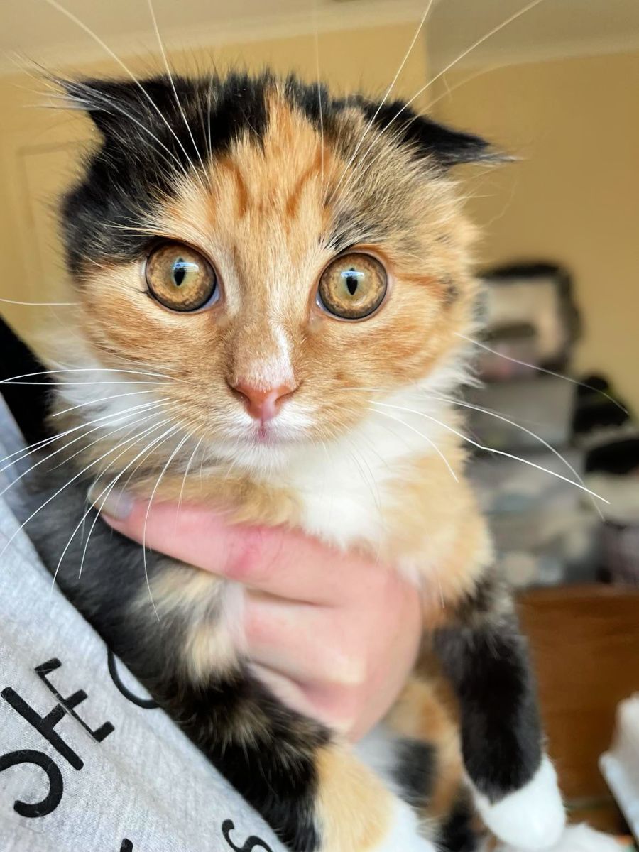 While she is a happy, bouncy kitten, Jersey still has Scottish Fold genes and there is the potential for this to cause cartilage growth in places it shouldn’t. Her new family should be on the lookout for any joint pain she may experience as she gets older and ensure she’s kept at a healthy weight.